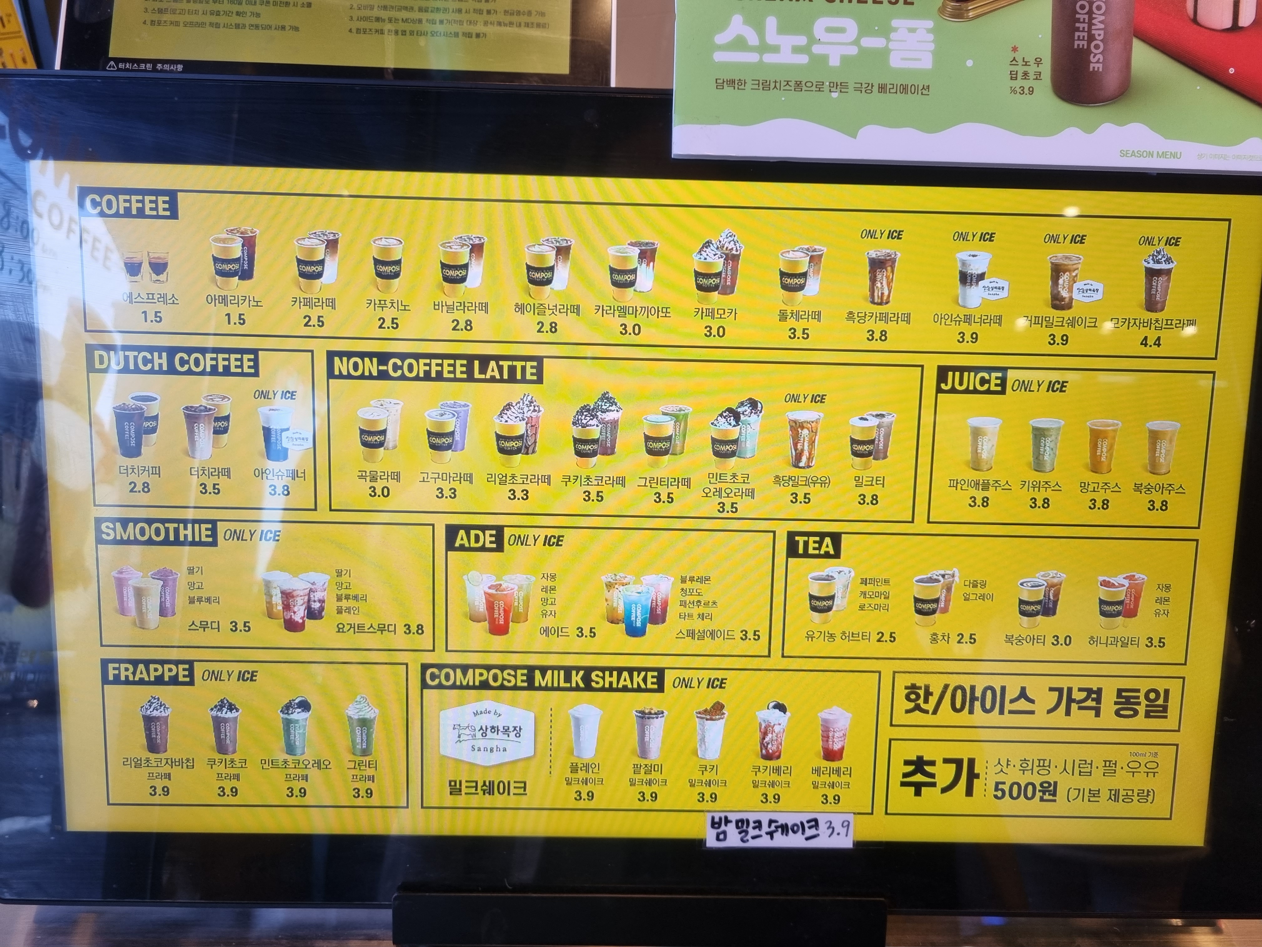 #컴포즈커피 메뉴 #컴포즈커피메뉴