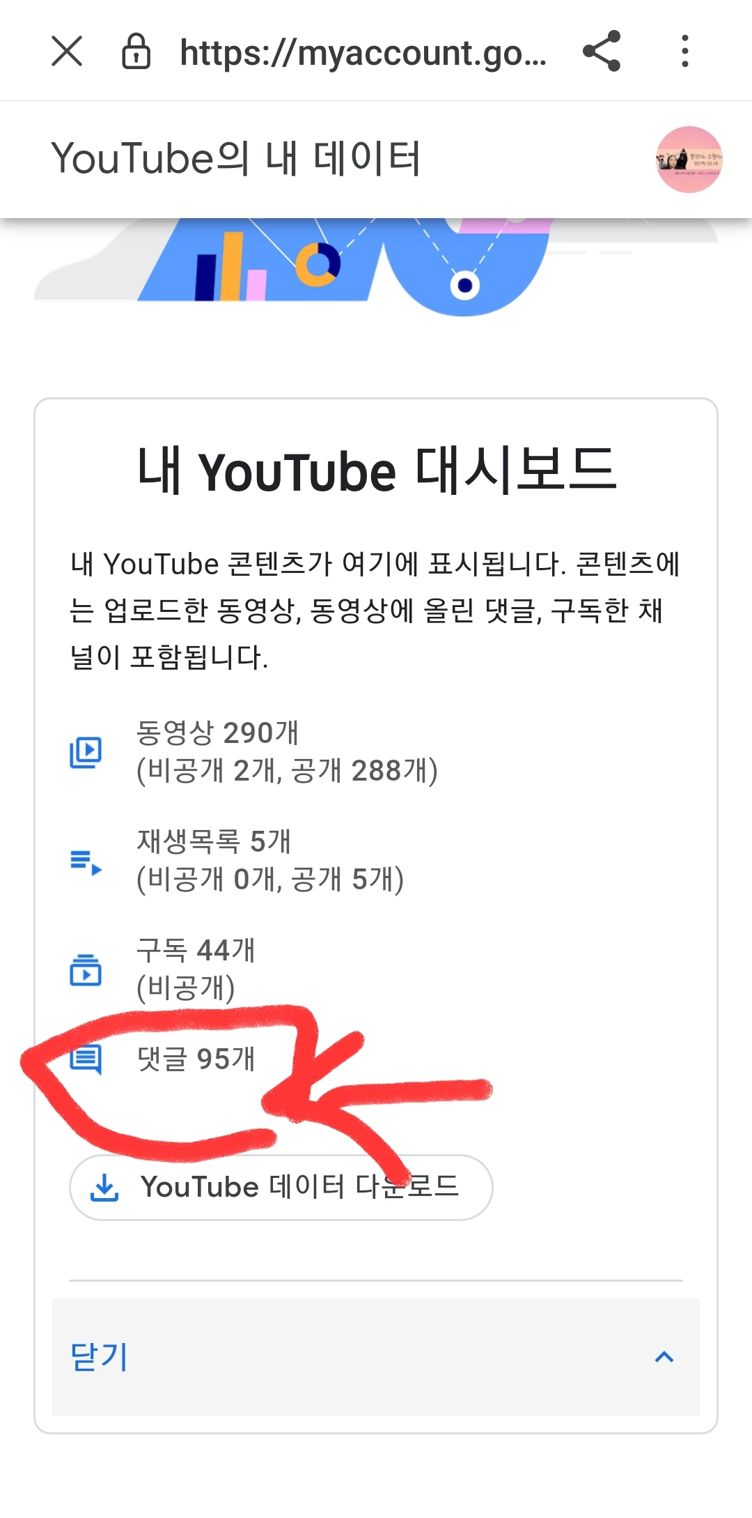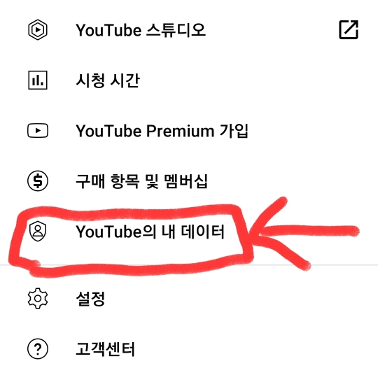 유튜브의 내 데이터 누르기~~!