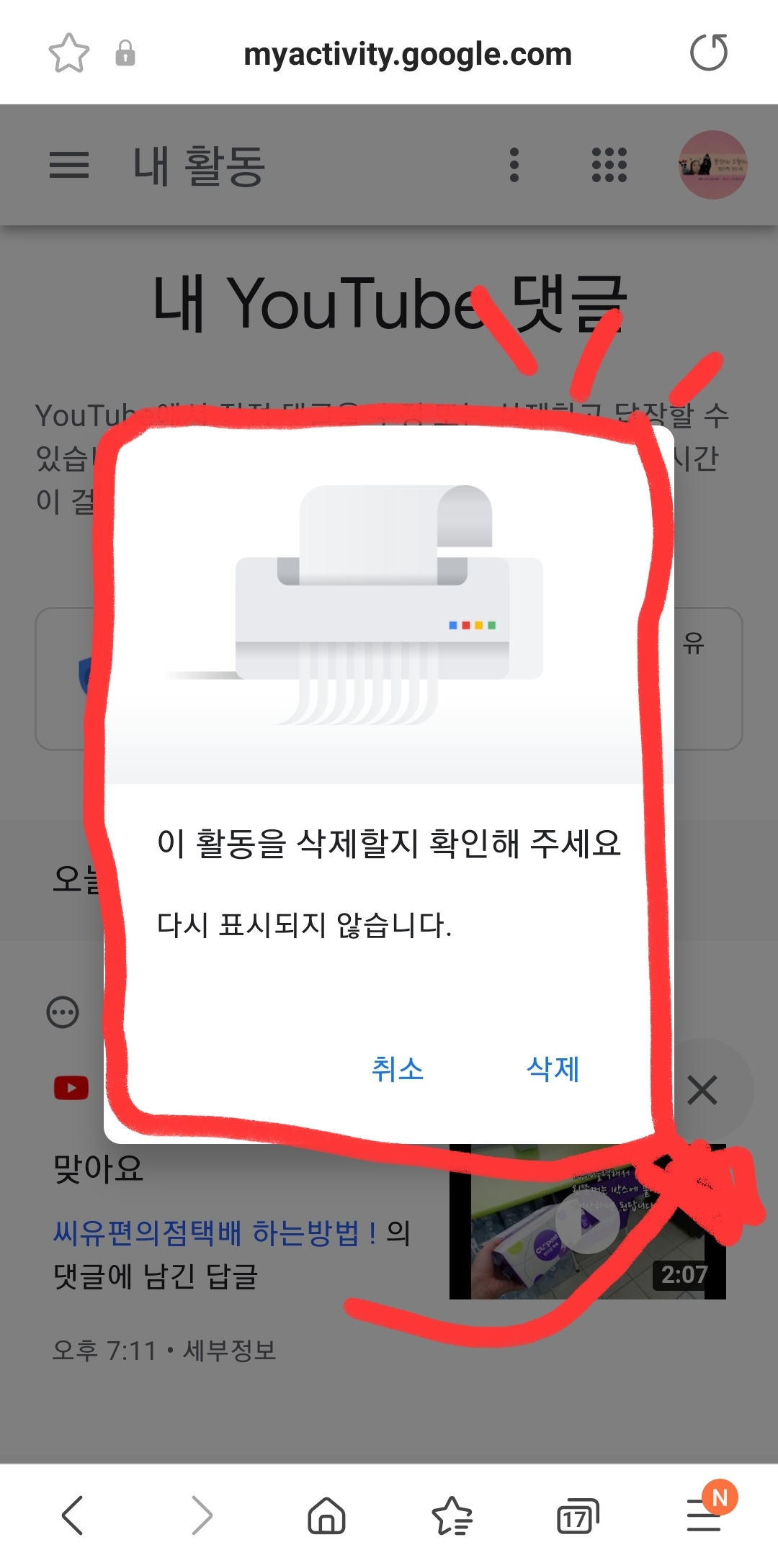 유튜브 내댓글 쓴거 삭제하기!!