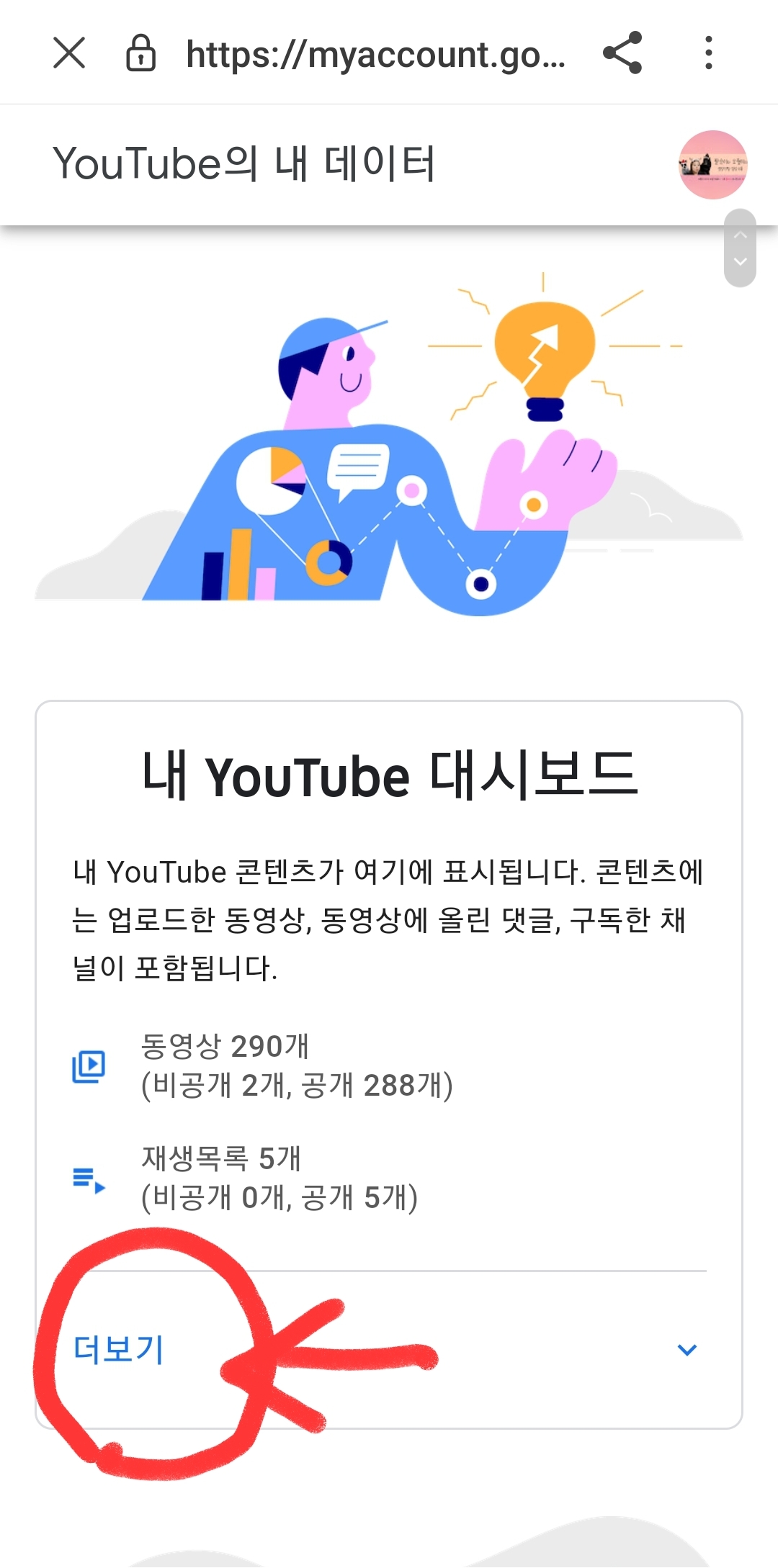 내 유튜브 대시보드 내에 더보기 클릭