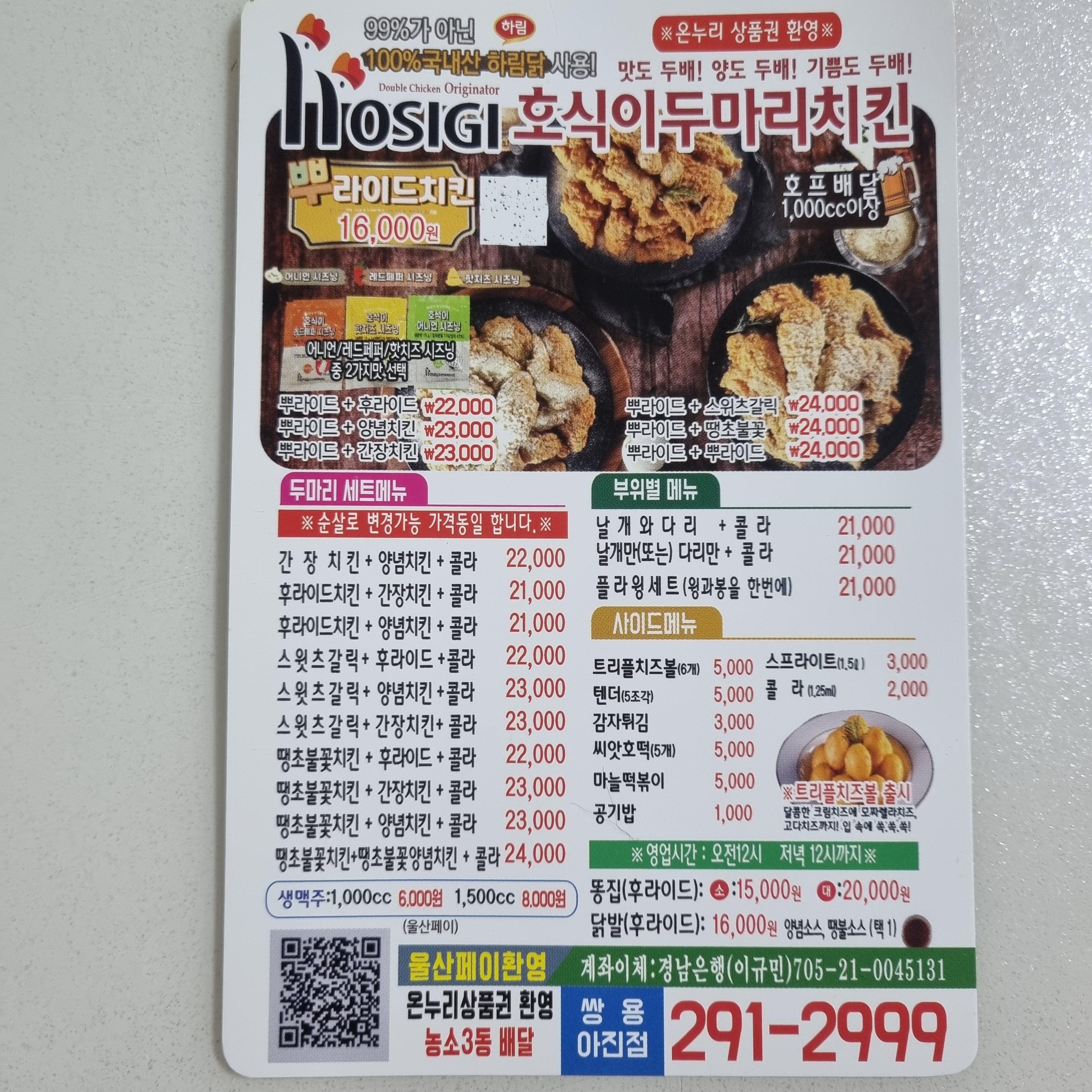 #호식이두마리치킨메뉴#호식이두마리치킨