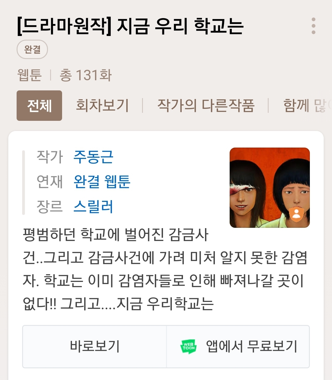 평범하던 학교에 벌어진 감금사건..그리고 감금사건에 가려 미처 알지 못한 감염자. 학교는 이미 감염자들로 인해 빠져나갈 곳이 없다!! 그리고....지금 우리학교는