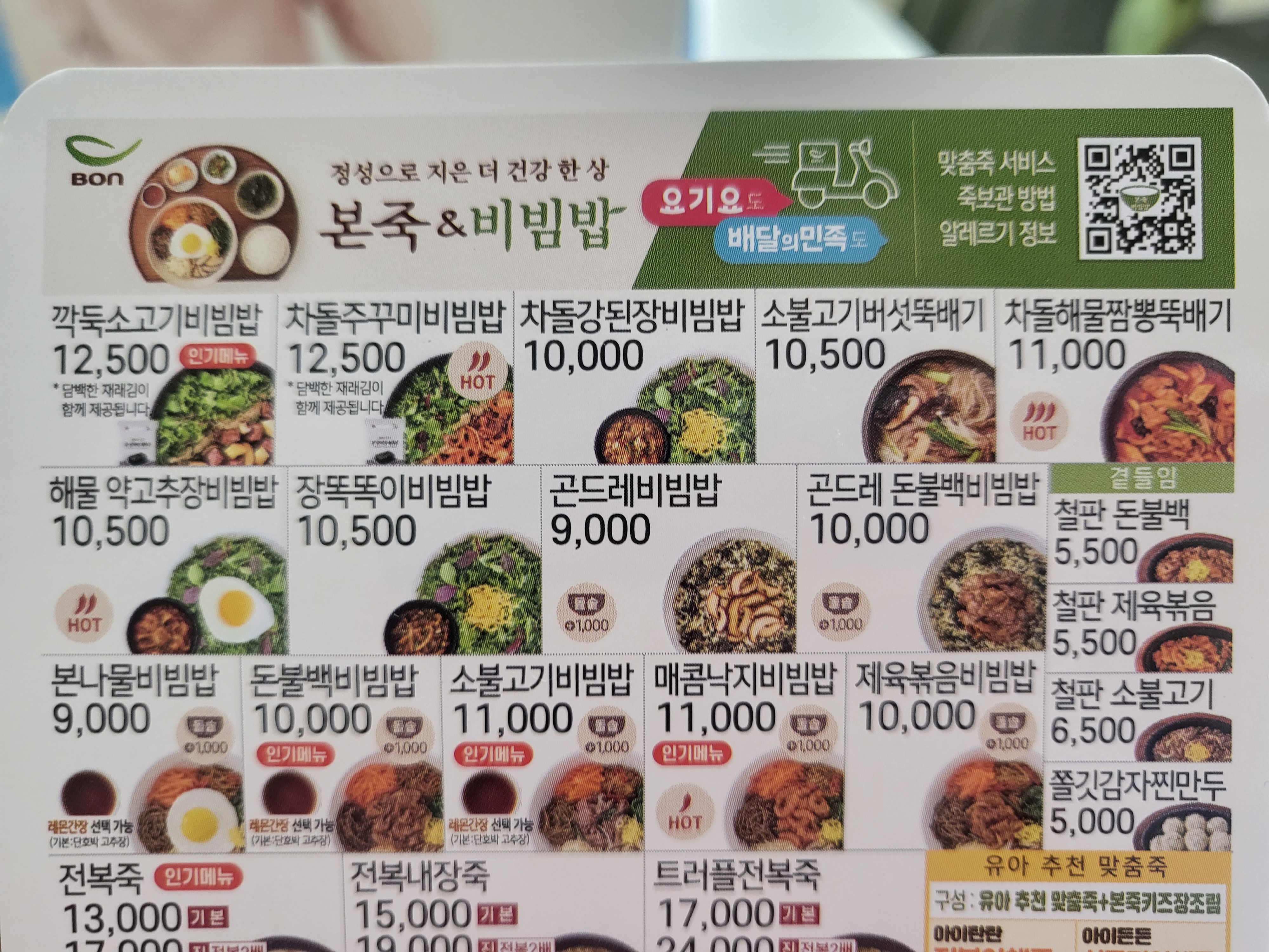 본죽 비빔밥 메뉴 다 있어요